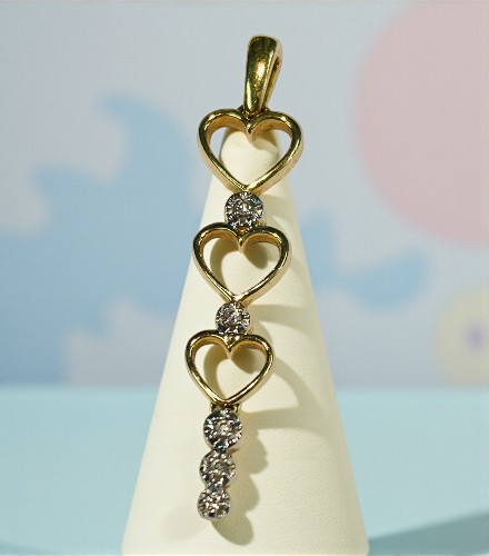 Questo ciondolo in oro giallo 18 carati celebra l’amore in tutte le sue forme con un design dolce e raffinato. I tre cuori creano una composizione armoniosa e simbolica, impreziosita da piccoli brillanti che donano luce e movimento. L’oro giallo, caldo e luminoso, esalta la brillantezza delle pietre e conferisce al gioiello un fascino romantico e intramontabile. Perfetto come regalo dal significato profondo o come dettaglio prezioso da indossare ogni giorno. Un gioiello che racconta emozioni autentiche con eleganza.